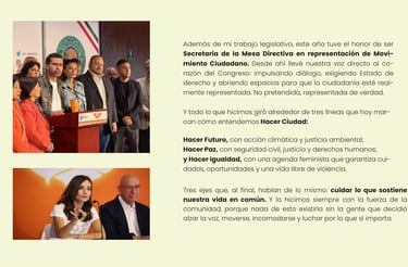 Soy Laura Ballesteros, Diputada Federal, y este es el resumen de mi primer año legislativo. Un año que comenzó con una convicción sencilla, pero ENOOOORME: defender el derecho al FUTURO.